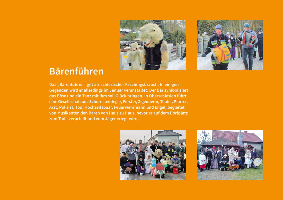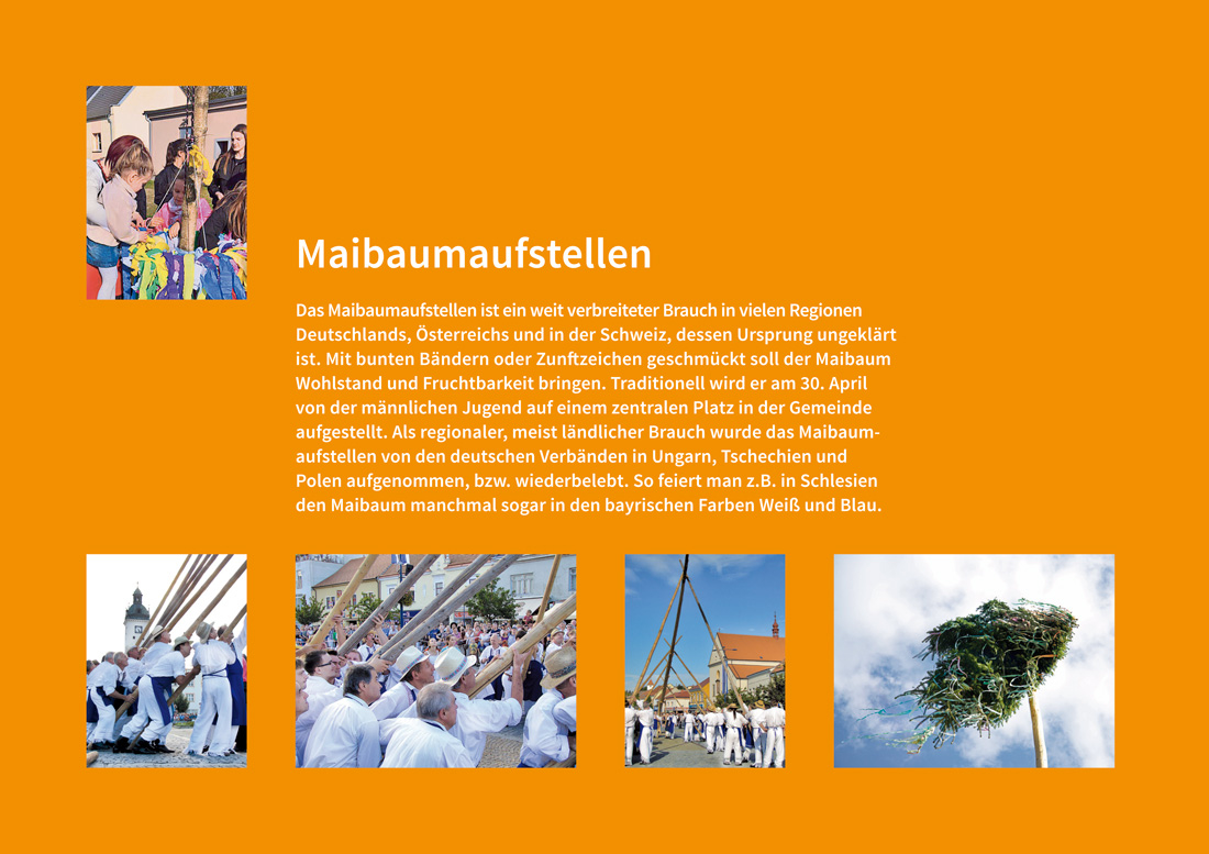 Es klingt paradox, aber um lebendig zu bleiben, müssen Traditionen immer wieder aktualisiert werden. Das Maibaumaufstellen, das so genannte Bärenführen in Schlesien oder der „Urzelnlauf“ in Siebenbürgen sind Beispiele für eine innovative Wiederbelebung von profanen Bräuchen.