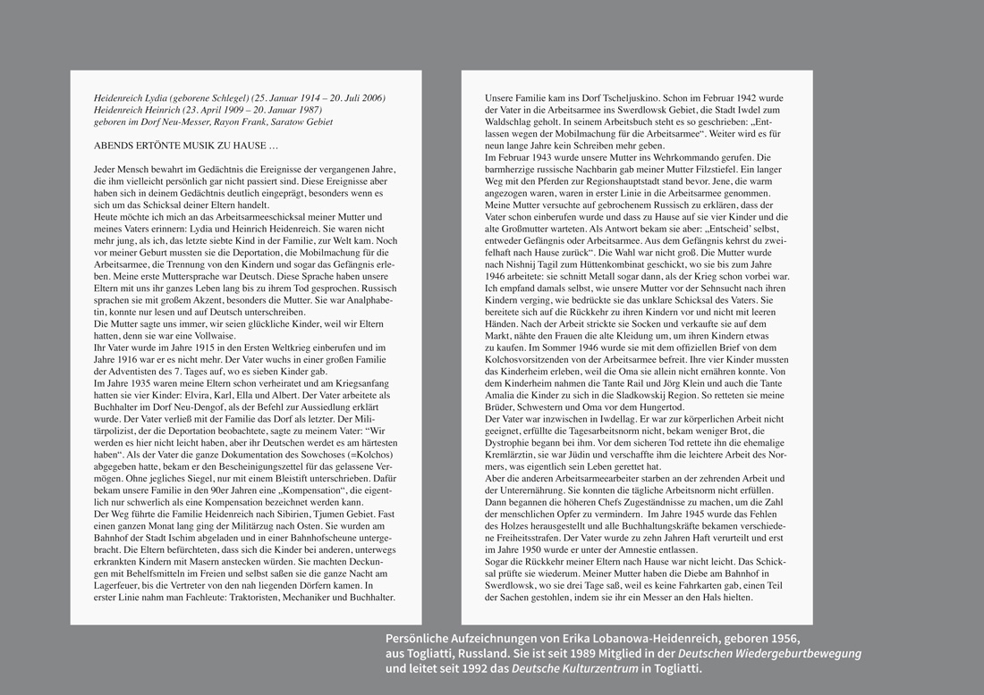 Die politische Dimension von ethnischer Identität wird deutlich, wenn es um Ausweisung, Deportation, Enteignung oder Vertreibung geht. „Das stärkste Gefühl der Zugehörigkeit entstand während der Deportation“, so erinnert sich eine Deutsche aus Georgien. Die Deportation der Deutschen in Lager und die zwangsweise Eingliederung in die Arbeitsarmee (russisch: Trudarmija) innerhalb der Sowjetunion ab 1941 sind prägende Momente der familiären Erinnerung der Russlanddeutschen. Nach 1945 gab es auch in anderen Ostblock-Ländern Zwangsarbeitslager für die deutschstämmige Bevölkerung sowie Deportationen in die Sowjetunion. Diese kollektiven Schicksale werden gerade erst aufgearbeitet.