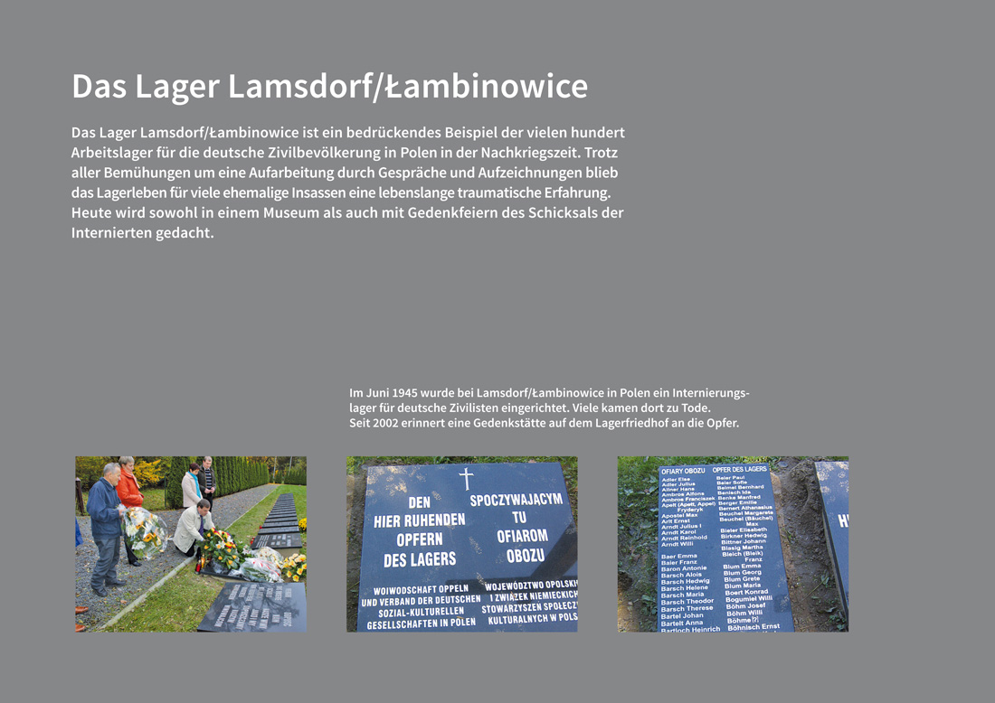 Die Erinnerung an Flucht und Vertreibung der Deutschen nach 1945 konnte in vielen Ländern des ehemaligen Ostblocks erst seit den 1990er Jahren gepflegt werden. In Ungarn wird z.B. seit 2012 am 19. Januar der Vertreibung der deutschsprachigen Bevölkerung zwischen 1946 und 1948 gedacht.