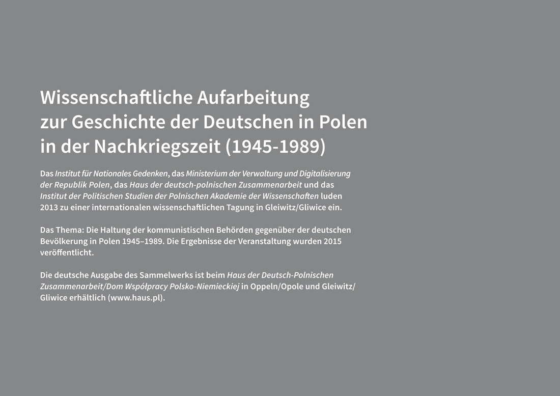 Die nach 1945 in den Siedlungsgebieten noch verbliebenen Deutschen wurden ihrer kulturellen und nationalen Identität durch Assimilierungsdruck und Sprachverbot weitgehend beraubt. Deutschsprachige Inschriften auf Gebäuden, Friedhöfen oder Denkmälern wurden unkenntlich gemacht; deutsche Familiennamen wurden geändert. Deutsch konnte nur im Geheimen oder in der Familie gesprochen werden.