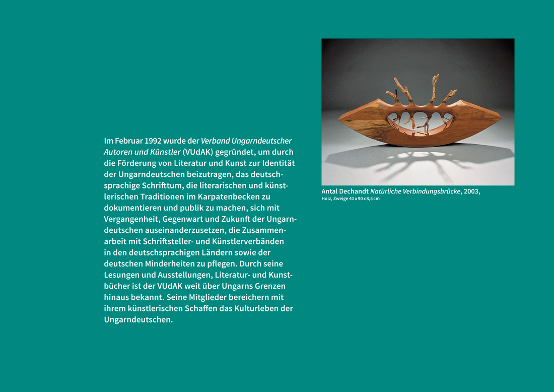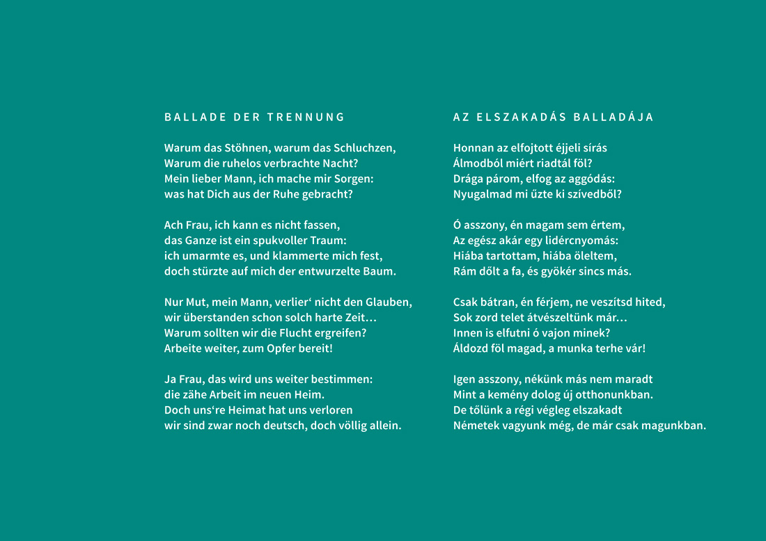 Der Dichtkunst bietet die Zweisprachigkeit eigene Spielräume, welche beispielsweise die ungarndeutsche Lyrikerin Valeria Koch für ihr künstlerisches Werk nutzte. Ob Hochliteratur oder Heimatdichtung – die seit den 1970er Jahren verbesserten Infrastrukturen und Aktionsräume eröffnen der gefühlten Heimatlosigkeit mit Kampagnen wie „Greif zur Feder!“ neue Felder künstlerischen Ausdrucks.